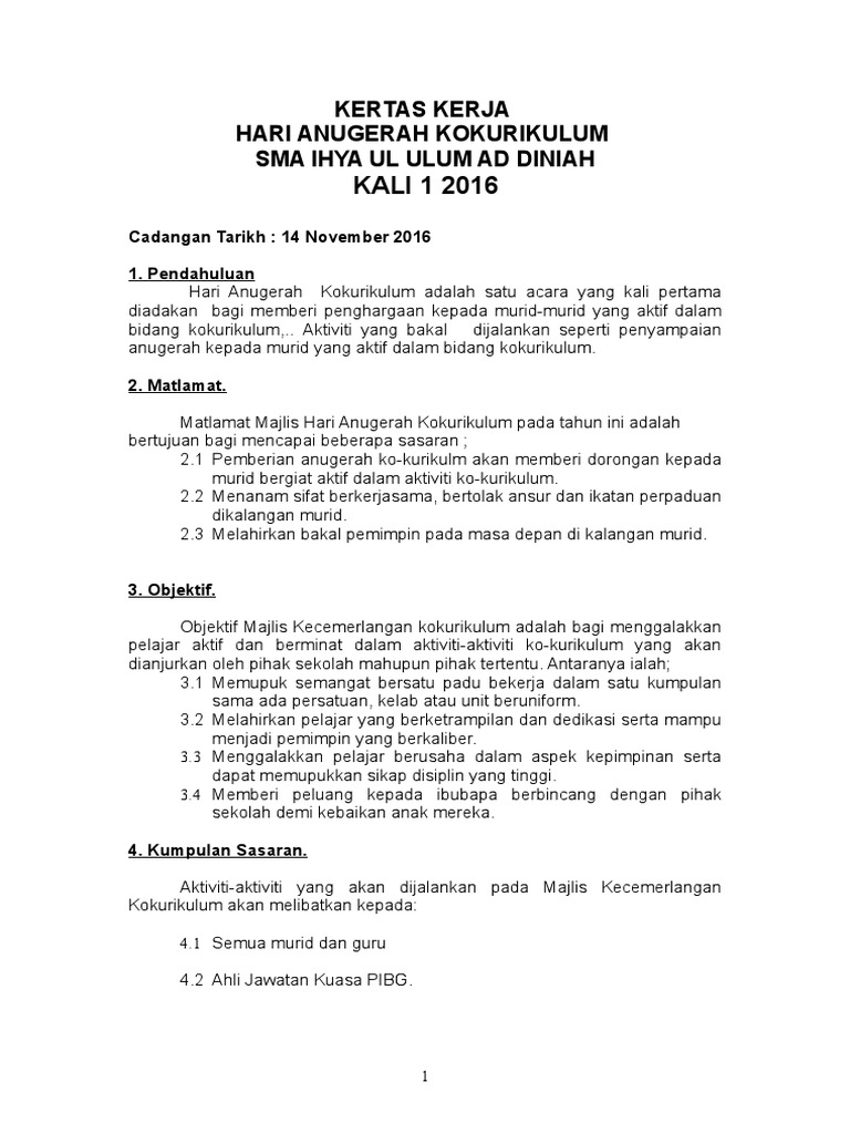 Kertas Kerja Hari Anugerah Kokurikulum Kali 1 Tahun 2016 Pdf