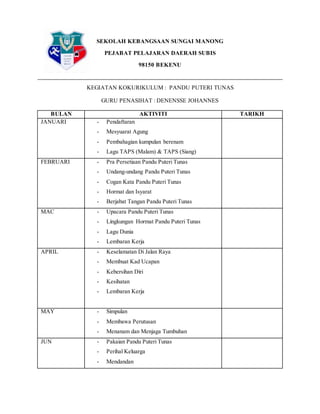 Rancangan Aktiviti Perjumpaan Tunas Puteri